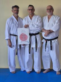 Hans Dreising bestand die Prüfung zum 3. Dan beim Jährlich stattfindenden Gasshuku (Trainingslager) in Taunusstein. Am ende des 5tägigen Lehrgangs fanden die Dan-Prüfungen statt. Die Prüfungsleitung hatte Bundestrainer Hideo Ochi, 9. Dan. Hans betreibt den Karatesport bereits seit 1980. Sein Motto lautet: Mit Karate kann man 30 Jahre lang 40 sein.