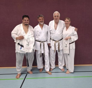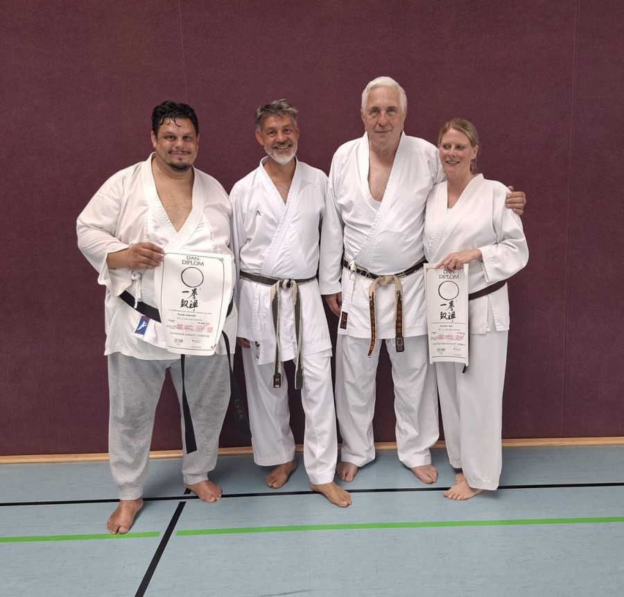 Gerd Rojahn bestand die Prüfung zum 4. Dan in Bruchsal. Nach langer und intensiver Vorbereitung präsentierte er den beiden Prüfern Werner Dietrich (6. Dan) und Reinhard Schmidt (7. Dan) ein hervorragendes Prüfungsprogramm. Geprüft wurden die Kata (Kür), das Kihon (Grundtechniken) und die entsprechenden Spezialteile, Kata Bunkai (Kata Anwendung und Kumite (Kampf). Gerd betreibt den Karatesport bereits seit über 40 Jahre und war ein erfolgreicher Wettkämpfer. Der Shotokan Karate Dojo Lingen e.V. gratuliert zu dieser tollen Leistung.