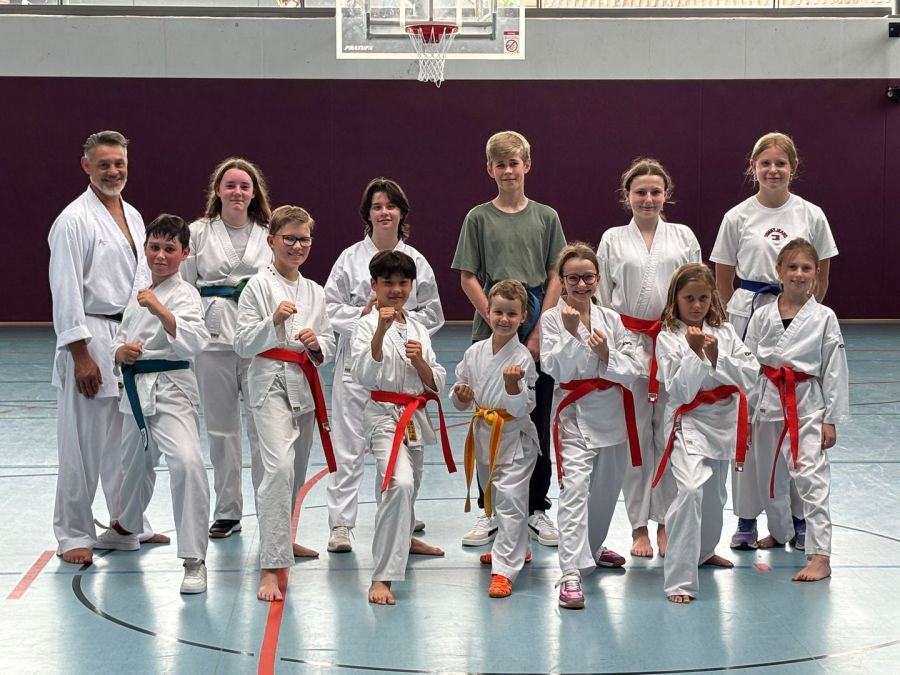 Die Prüfung zum Gelb-orange Gurt bestand David Schwab. Zum Orange Gurt bestanden. Sophie Schwab, Lynn Rammes, Lynn Klawitter, Nele Klawitter, Milan Ledderbogen und Friedrich Behrendt. Zum Grün-blau Gurt bestanden: Mia Miller, Celine Köttering und Samuel Kiesling. Zum Blau Gurt bestanden Mia Piehl und Phil Wedler.