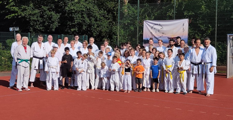 Kurz vor den Sommerferien richteten wie wieder unser Sommerabschlusstrainig für alle Vereinsmitglieder aus. Die Trainingseinheiten waren in Kata (eine Art Kühr) mit Andreas Driemel, Kumite (Kampfkombinationen) mit Georgio und Nando Schmidt und Selbstbehauptung sowie Selbstverteidigung mit Reinhard Schmidt eingeteilt. Somit hatten alle Mitglieder die Möglichkeit bei den Trainern die unterschiedlichen Facetten und verschiedenen Schwerpunkte zu trainieren. Alle Teilnehmer hatten bei dem Training und beim anschließenden Grillen viel Spaß.