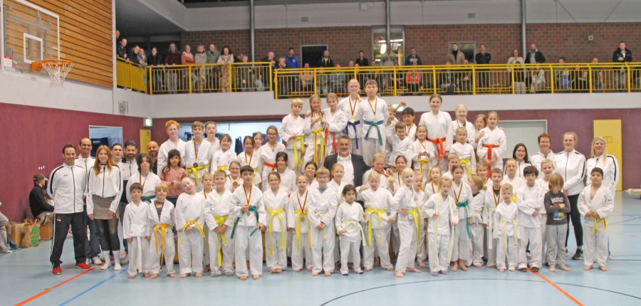 Über 60 Kinder waren bei unser jährlich stattfindenden Vereinsmeisterschaft am Start. Die Starts wurden in Gürtel- und Altersklassen unterteilt. Mit viel Einsatz und Kampfgeist präsentierten die jungen Kämpfer im beisein ihrer Eltern ihre Katas. In der Klasse Weiss- und Weiss/Gelbgurte belegte Paula Rolfes-Bölscher den 1. Platz, Dalia Schreiner den 2. Platz, Leon Noll den 3. Platz und Malia Karle den 4.Platz. In der Klasse Gelbgurte Bambini belegte Mascha Sheremet den 1. Platz, Maxim Gergert den 2. Platz, Hannah Wernecke den 3. Platz und Rita Krinke den 4. Platz. In der Klasse Gelbgurte belegte Laila Schmidt der 1. Platz, Johanna Kursawe den 2. Platz, Nele Smusch den 3. Platz und Laurenz Kolmes den 4. Platz. In der Klasse Gelb/orange belegte Lina Schwarz den 1. Platz, Diana Schwarz den 2. Platz, Mila Fruhner den 3. Platz und Alexander Hellmich den 4.Platz. In der Klasse Orangegurte belegte Milan Ledderbogen den 1. Platz, Lilith Grande den 2. Platz, Enno Meemann den 3. Platz, und Lynn Klawitter den 4. Platz. In der Klasse Grüngurte Bambini belegte Luna Hoxha den 1. Platz, Armando Schmidt den 2. Platz und Mathis Lübbers den 3. Platz. In der Klasse Grün- und Blaugurte belegte Juli Niemann den 1. Platz, Samuel Kiesling den 2. Platz Mia Miller den 3. Platz und Lennard Keuter den 4. Platz.
